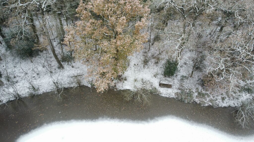 The unique and breathtaking beauty of the winter weather this year on retreat made it easy for us to take our meditation practice out into the environment, to enjoy silent walking together through the frosty landscape in the late morning and later, to find time alone to explore and experience the land in various ways. Some guests enjoyed the lovely wood-fired sauna in the woods, and even dared to dip in the plunge pool, breaking the thick ice on the surface of the water to cool off and shout out loud with the shock, while others quietly discovered the unique species and habitats of the re-wilding project at 42 Acres. We saw deer in the woods, wild cats on the shores of the lake, and on the frosty lanes. We startled hares in the fields, and observed the feats of engineering of the beavers that are thriving now after their reintroduction to this place where they are creating a network of dams and waterways around the lake.